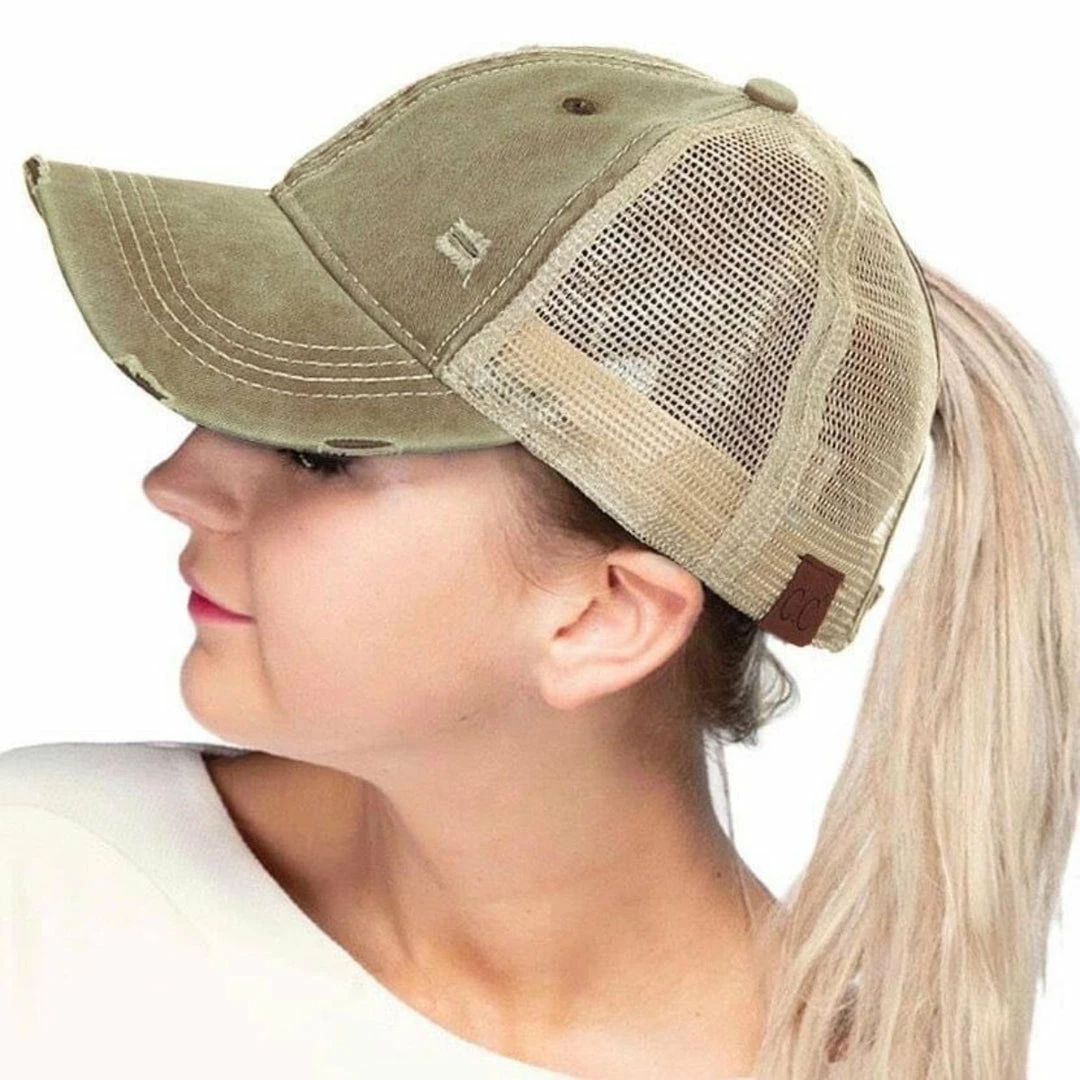BRAND NEW! This Olive/Beige High Ponytail CC Ball Cap is your newest favorite ball cap! It features an ALL NEW HIGH PONY criss cross design allowing you to wear your pony at varying level with a trendy twist!