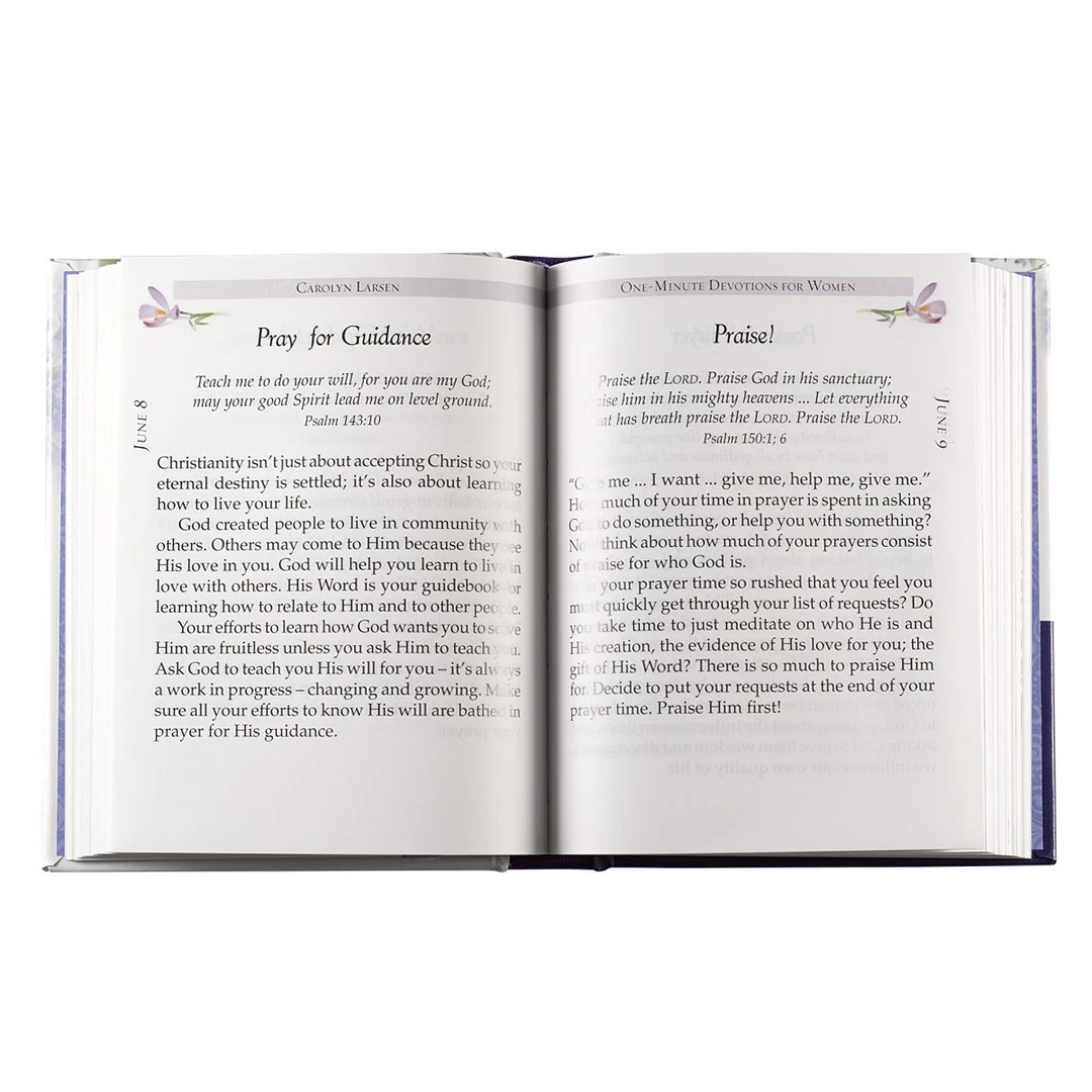 Life is busy. Especially busy for women who juggle home, family and career. One-Minute Devotions for Women is perfect for the woman who is busy with life, but has the desire to walk with the Lord, and grow spiritually every day. The messages are short yet sublime, and give hope and encouragement as she is reminded that God is always near – only a heartbeat away. The 366 topical messages are written in language every woman can identify with. This compact volume is a pleasure to handle and open every day, and features: a padded hardcover binding with silver foiled title; an attached ribbon page marker and a presentation page for gift-giving.