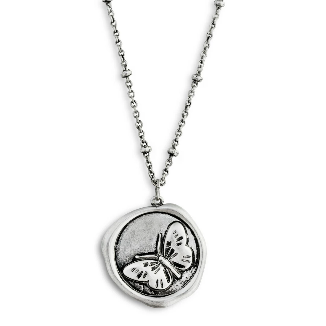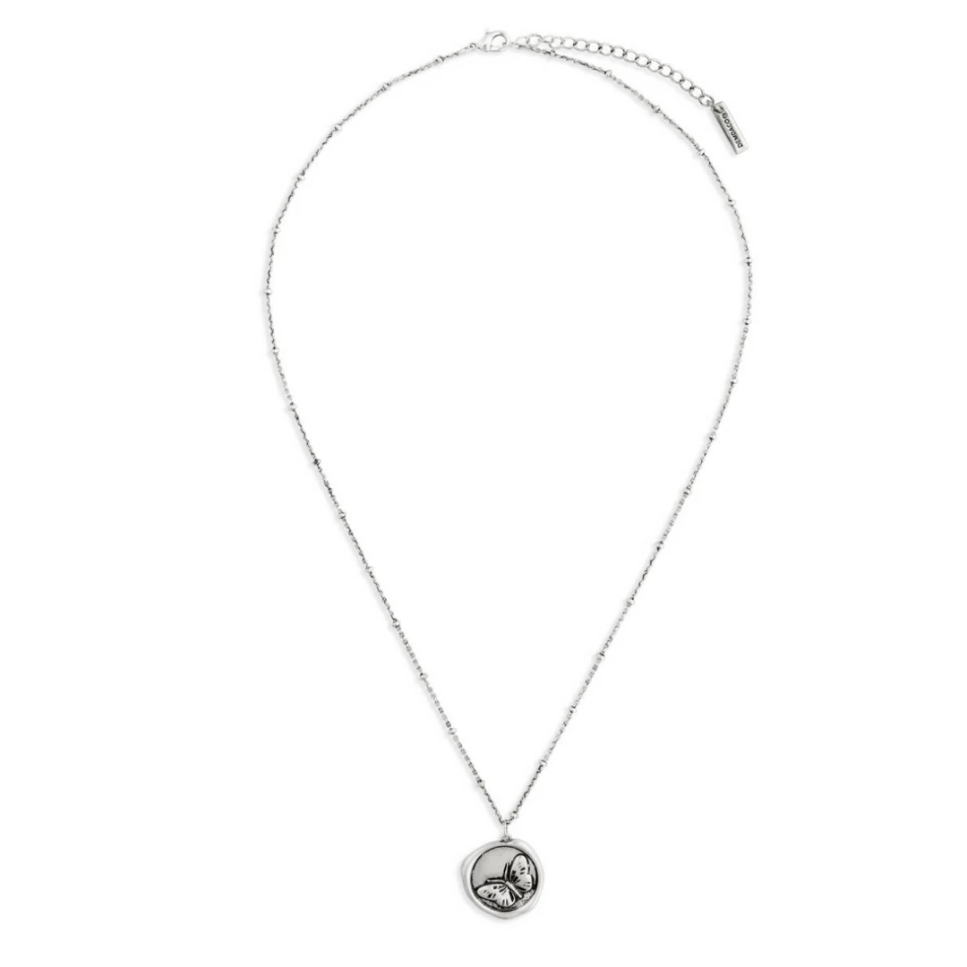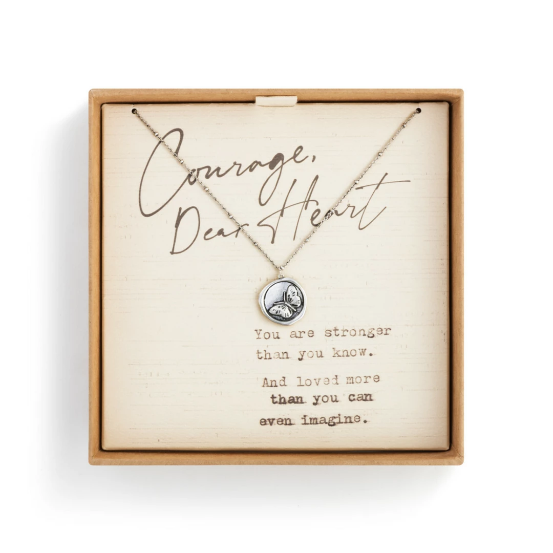 Our Dear You Collection values expressions conveyed through the art of letter writing. As such, this necklace offers an unexpected gifting experience that captures the careful effort and anticipation of sending and receiving a thoughtful note. The Dear You Necklace – Courage is a unique women’s accessory. Embossed to resemble a wax letter seal, this silver necklace features a lovely butterfly to symbolize growth and a fresh start. As an added touch, each necklace is ready for gifting with thoughtful packaging and a loving sentiment that reads, “Courage, dear heart you are stronger than you know. And more loved than you imagine.” A necklace as meaningful as this is ideal for Christmas, holidays, birthdays or just to show you care.