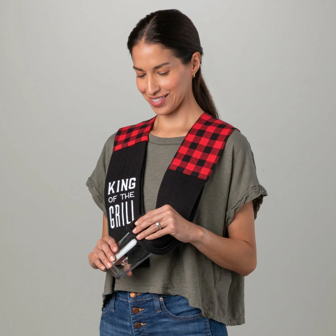The Kitchen Boa is a unique kitchen accessory that offers stylish function so the host/hostess can focus on the entertaining experience. No host or hostess should be without this innovative, wearable kitchen towel. King of the Grill print is a great gift for the guy at the grill. This Kitchen Boa can be machine washed with similar colors only. It can be warm ironed and should not be bleached. Sentiment: “King of the Grill”. DEMDACO King of the Grill Kitchen Boa By Bydesign Serving Collection. Made out of cotton, polyester fiber. Measures 68″ in length.