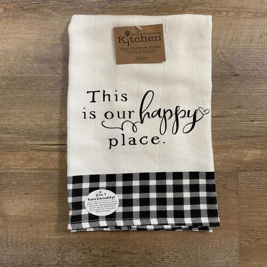 Classic white tea towel surface is ideal for drying glassware and reverses to absorbent terry cloth for everyday kitchen tasks.
