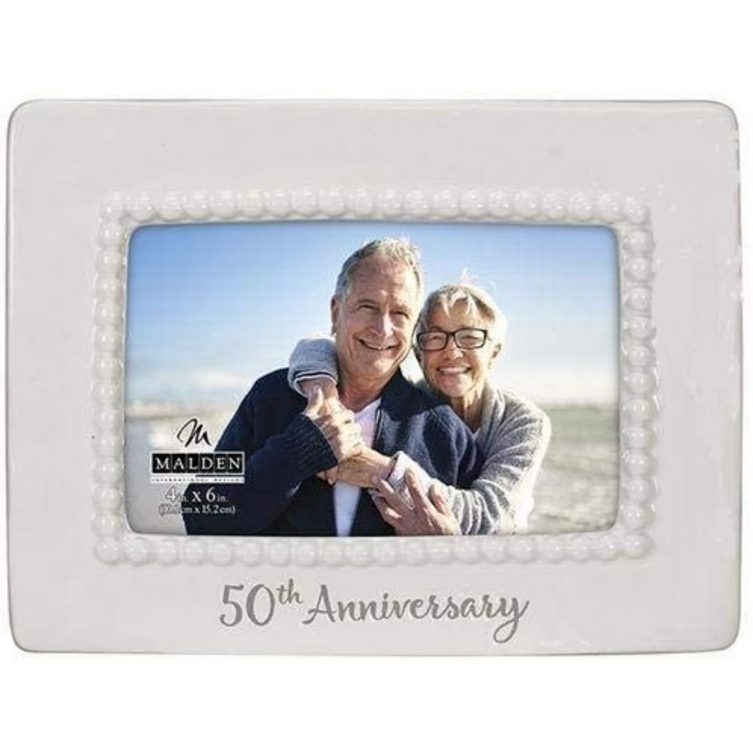 Celebrate this monumental day with the Malden 50th anniversary beaded ceramic frame. It adds a soft touch to any decor.