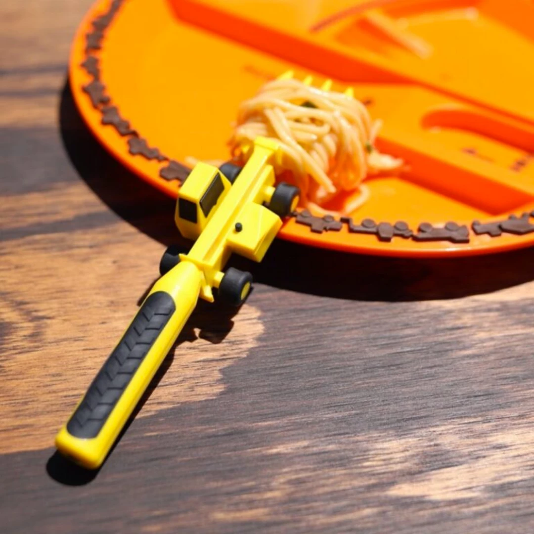 - Construction utensils are designed to work together to combine eating and play