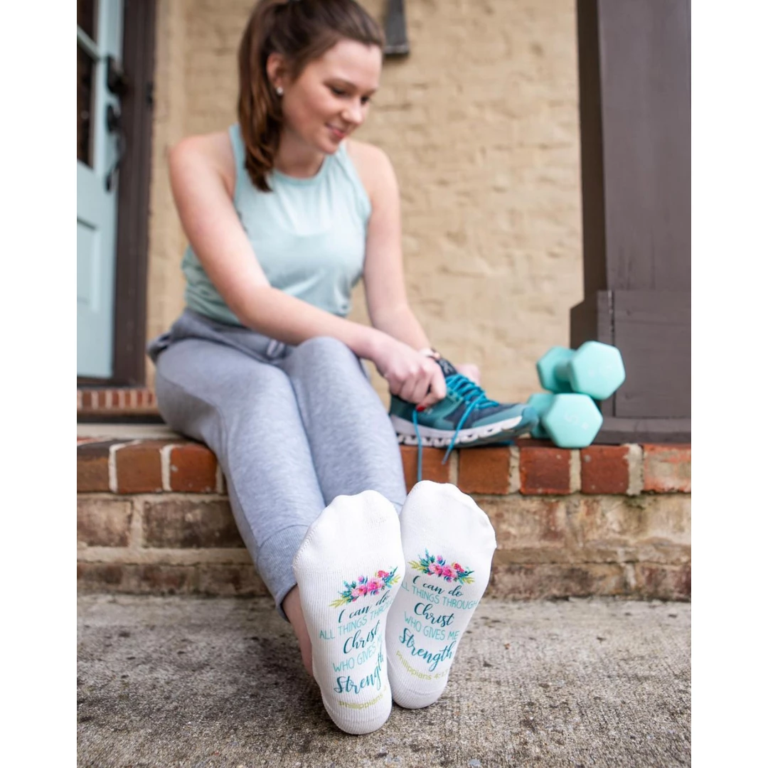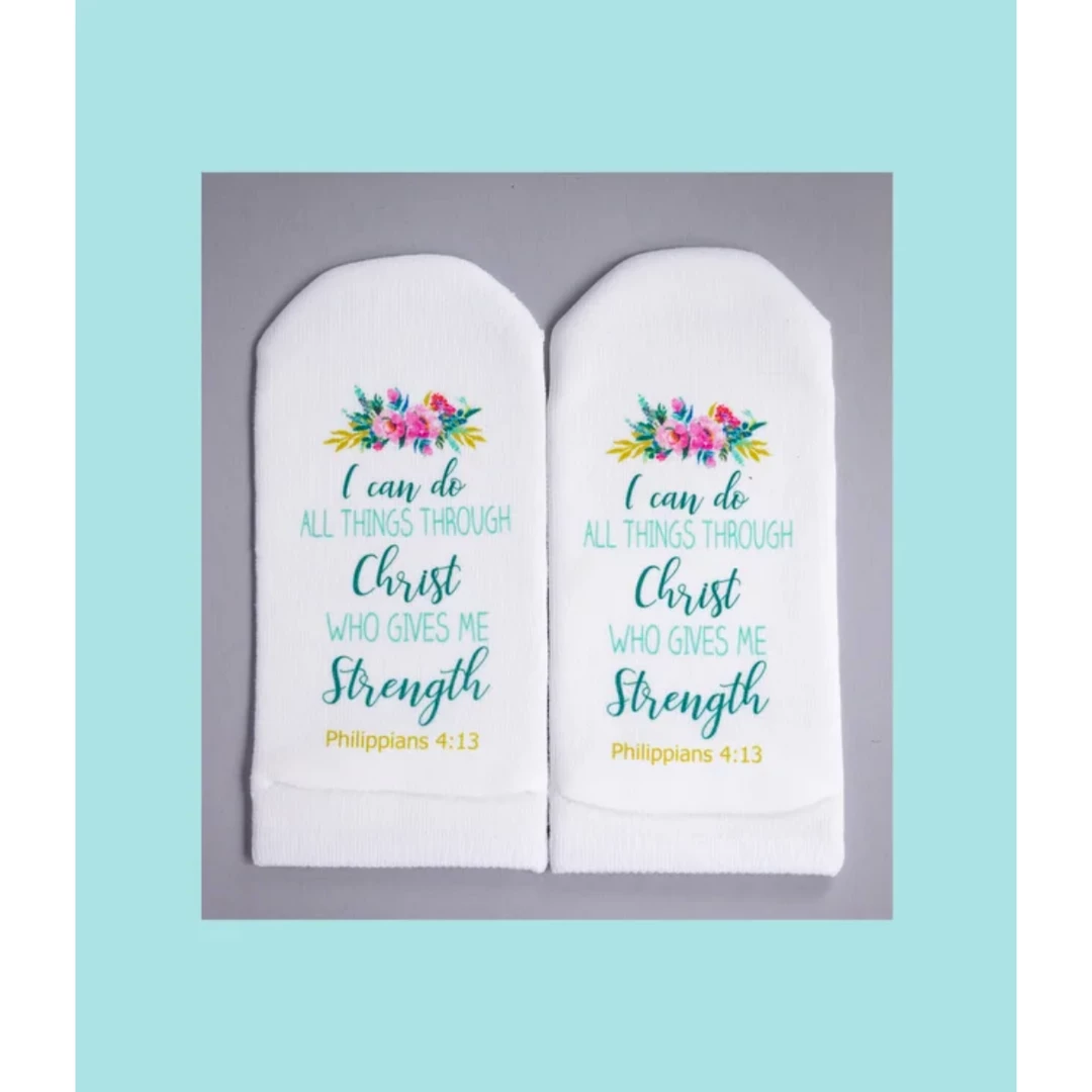 Flower design with Standing on the Word verse on the sole Philippians 4:13 I can do all things through Christ who strengthens me