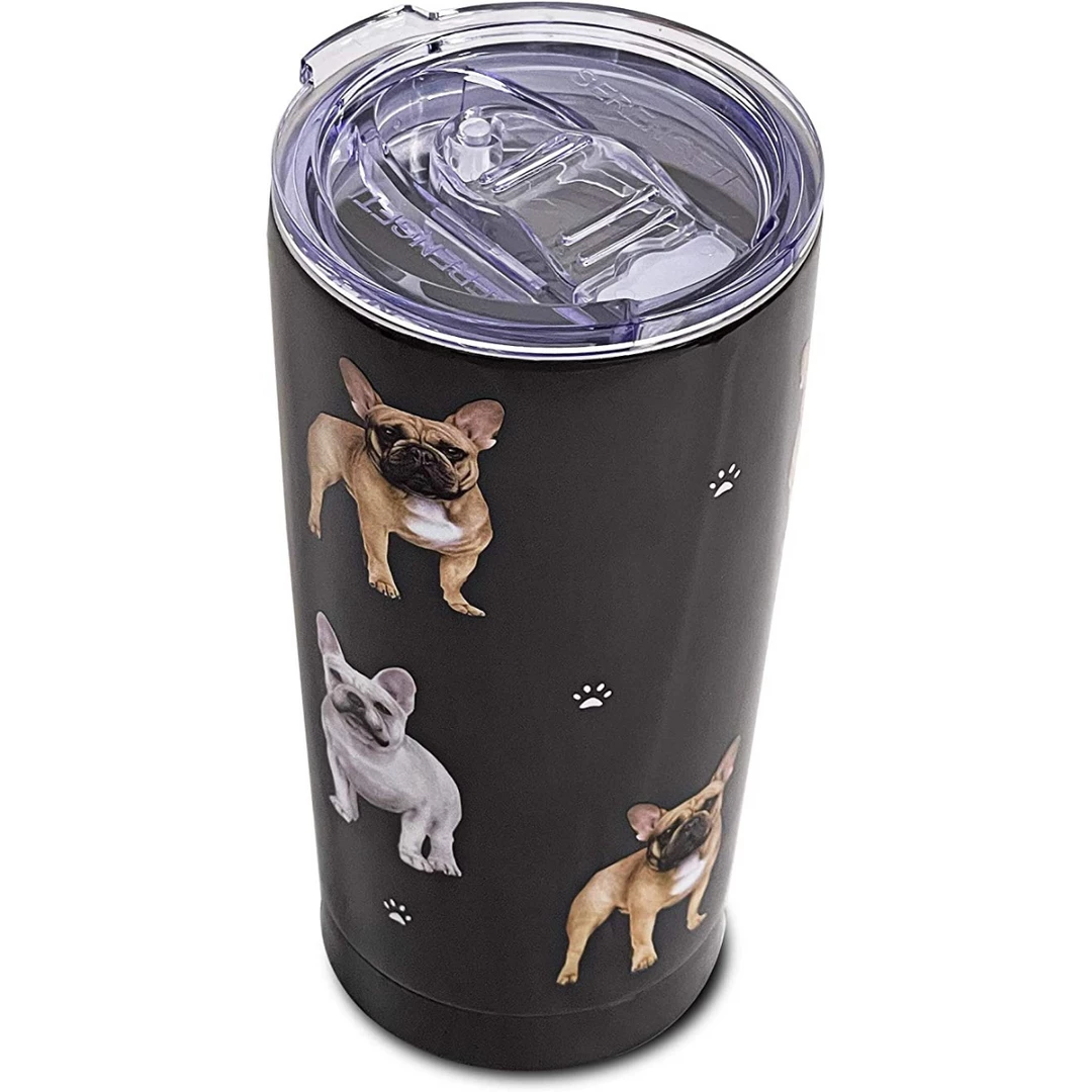 - French Bulldog Gifts : The French Bulldog Tumbler – Travel Mug has a beautiful 3D artwork of the dogs. If you have a French Bulldog or know a family or friend that has a French Bulldog, You owe it to yourself to buy this tumbler.