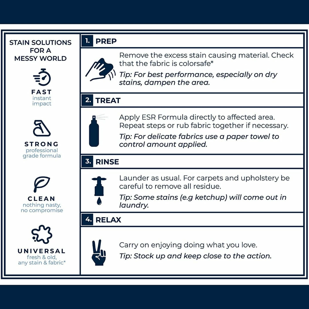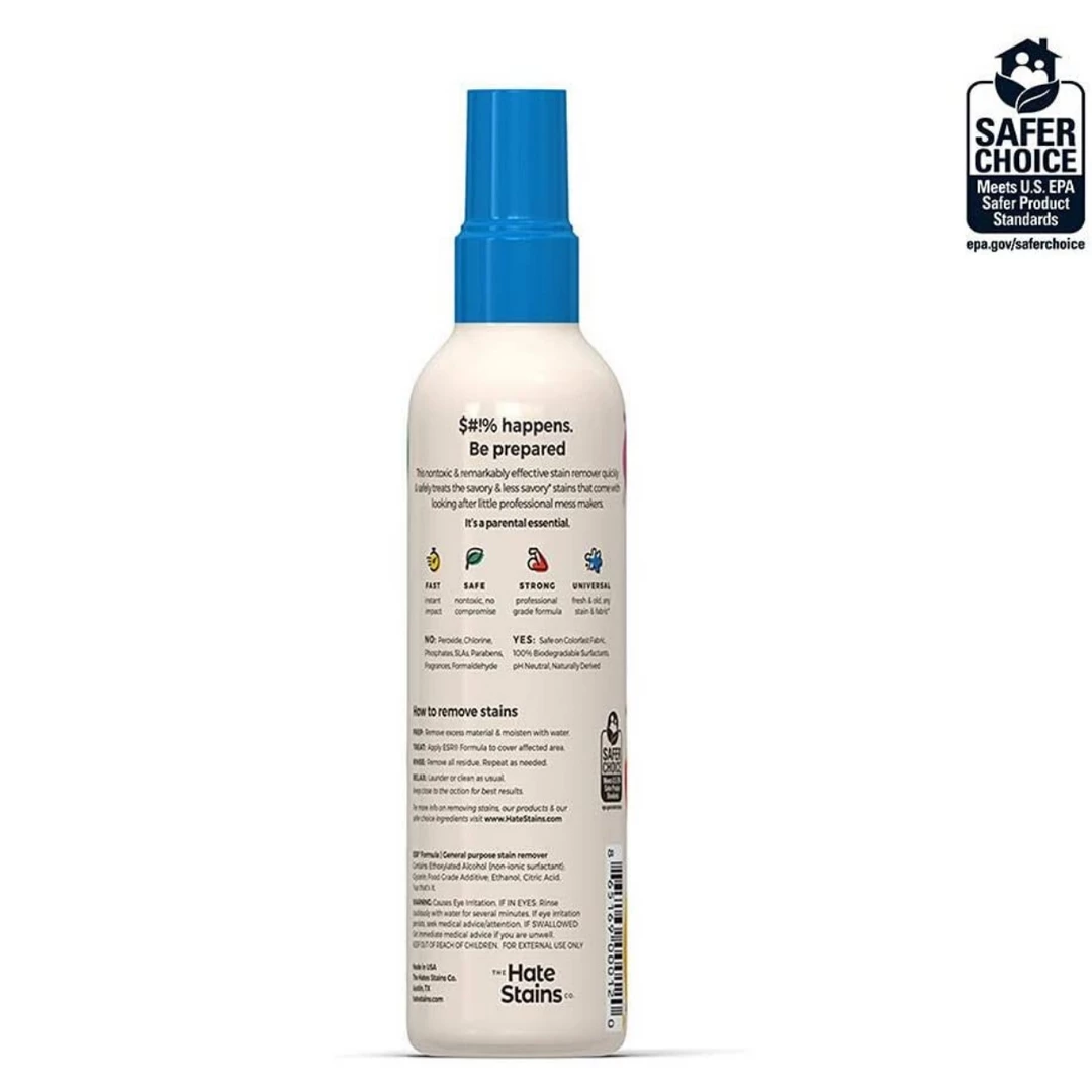 - A PARENTAL ESSENTIAL – A spot cleaning stain remover spray specifically designed to quickly & safely treat the inevitable stains made by the professional mess makers we love and care for.