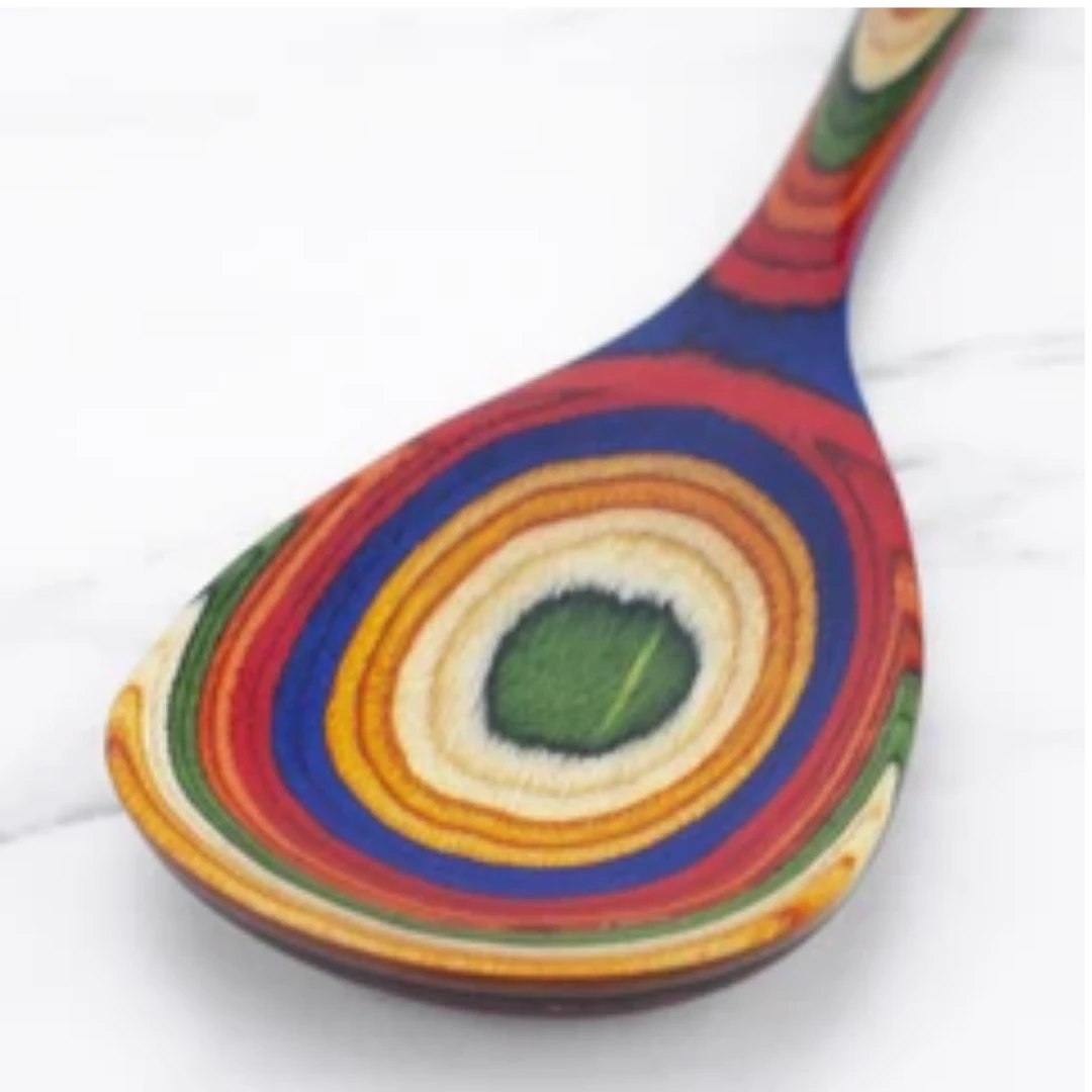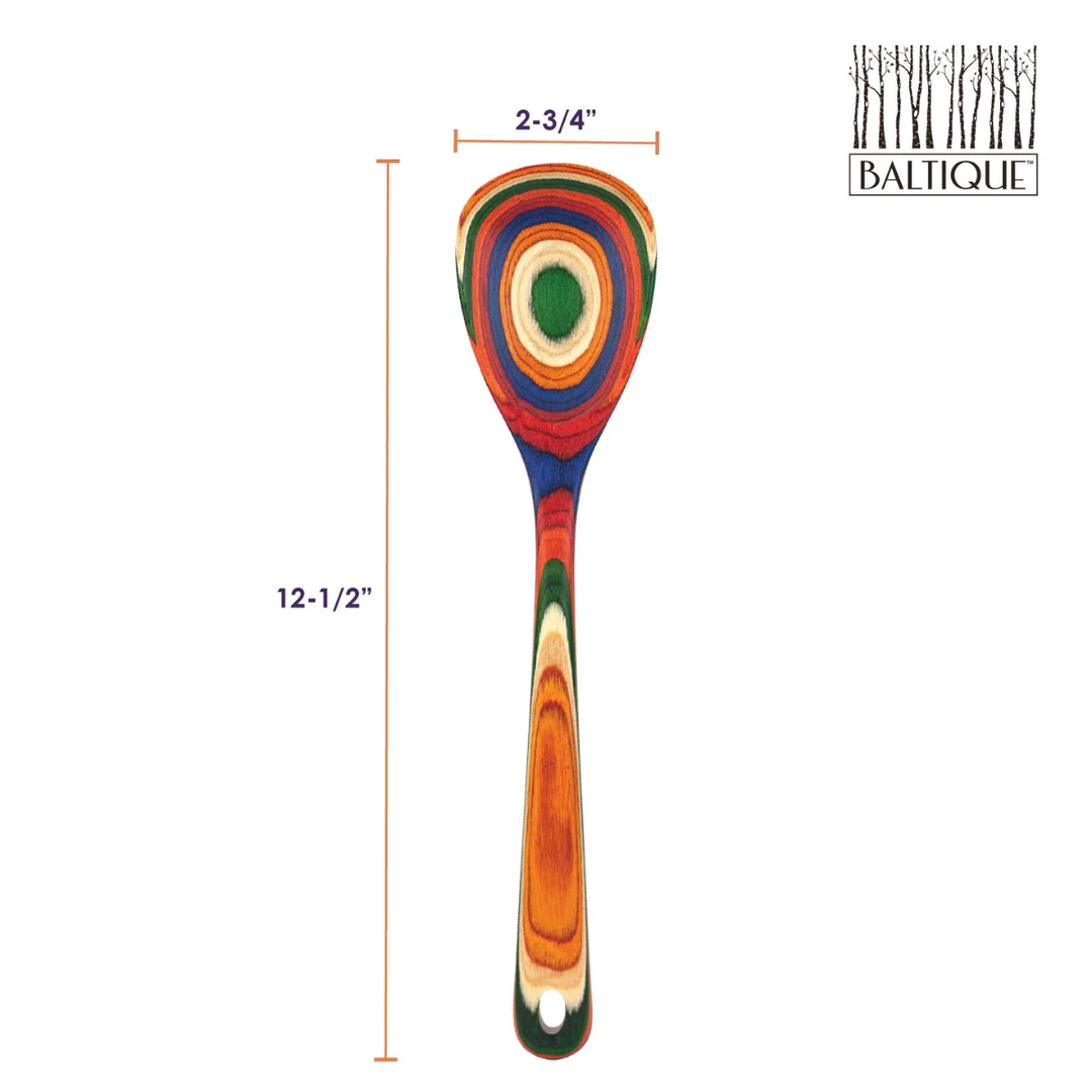 Add a splash of warming color to your kitchen with the Baltique™ Marrakesh Collection Mixing Spoon. This eye-catching utensil is masterfully crafted from layers of colored birched wood to create a gorgeous color array. The Marrakesh Collection features a rainbow blend of red, green, orange, blue and natural wood colors. The colorway was inspired by the bright and colorful marketplaces of Morocco. This brightly colored mixing spoon is wonderful for stirring and a delightful choice for serving that’s sure to draw attention from guests. At 12-1/2 inches long it can reach even the deepest of cooking pots and is safe for use on nonstick coatings! Includes a convenient hanging hole for easy storage and display. To clean, hand wash or wipe with a damp cloth; do not soak or wash in the dishwasher. Pair the mixing spoon with the other utensils in the Marrakesh Collection for a bright bouquet of color in your kitchen!