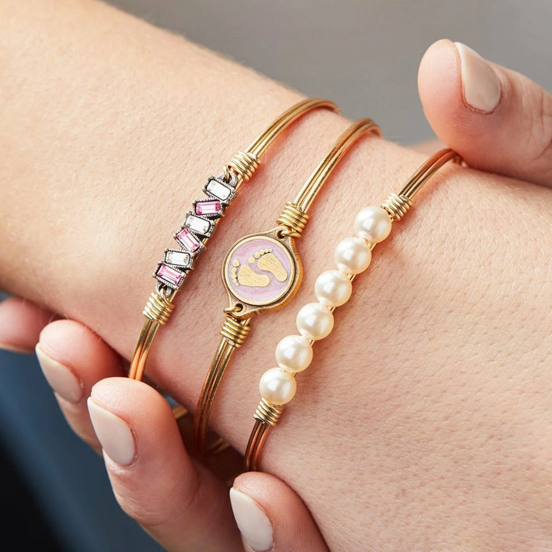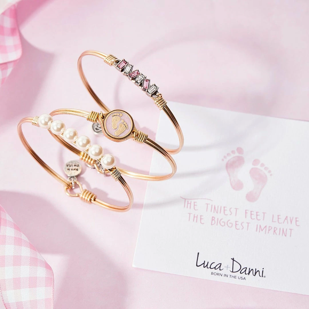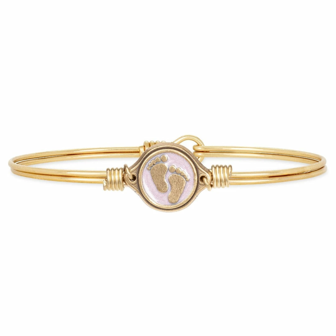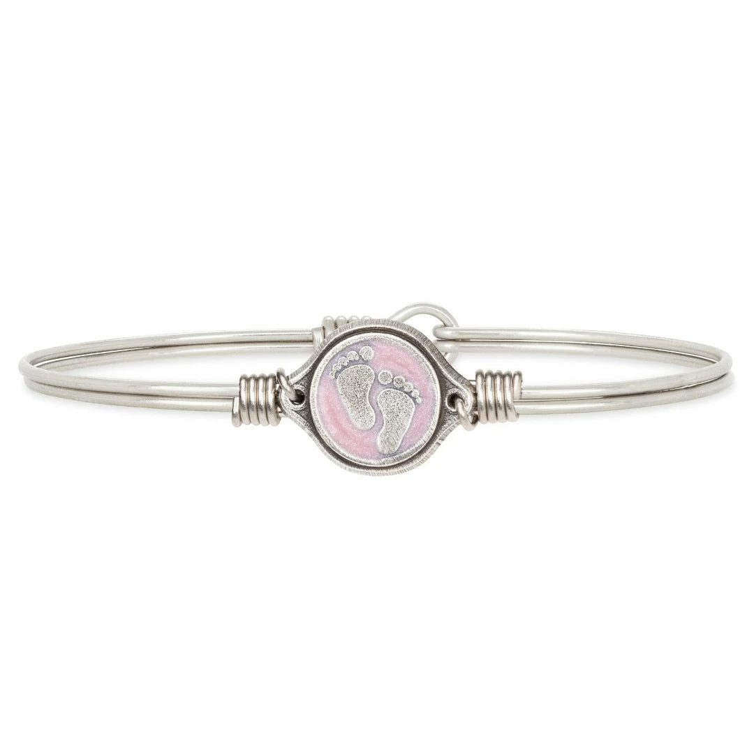 The pitter-patter of little feet isn’t the only thing she’ll be hearing. Ooohs and awwws abound in this baby-loving bangle thanks to a sweet footprint emblem surrounded by a softly colored epoxy finish.